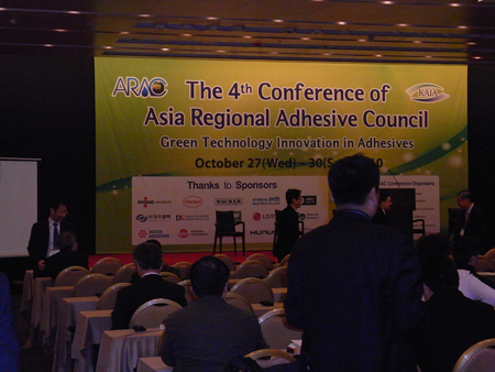 2010年10月22日至30日,黑龙江省科学院石油化学研究院派6人参加了由中国胶粘协会组织的代表团赴韩国参加“第四届亚洲地区胶粘剂大会(ARAC)”。本次大会由韩国胶粘剂协会主办,来自中国、日本、韩国、美国、欧洲等国家及台湾地区共260余名代表参加了大会。大会主要围绕胶粘剂绿色技术创新以及目前亚洲、欧洲胶粘剂市场和技术发展状况进行了报告和讨论。