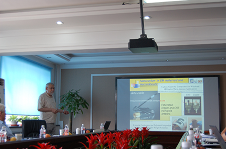 交流期间,白俄罗斯国立大学核问题研究所副所长S.?Maksimenko教授介绍了碳纳米管聚合物复合材料、纳米碳蜂窝材料、纳米碳改性磷酸盐等纳米碳材料在电磁领域的应用,S.?Maksimenko教授介绍了高双光折射率混合液晶的制备及评价方法,对其在微波通讯领域的应用进行了展望。
