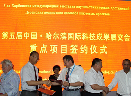 2014年6月30日,首届中国-俄罗斯博览会在哈尔滨国际会展中心隆重开幕。7月2日,博览会现场举行了“第五届中国·哈尔滨国际科技成果展交会重点项目签约仪式”,石化院副院长韩大维及白俄罗斯国立大学第一副校长茹拉夫科夫等出席了签约仪式。