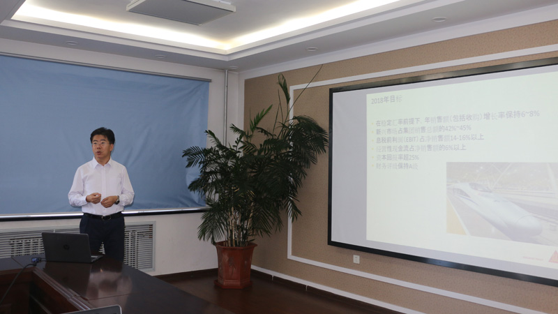 ? ? ? 29日上午双方进行了技术交流,首先石化院书记对曲军博士的到来表示欢迎,希望石化院能加深与瑞士Sika公司以及欧洲胶粘剂行业的合作。随后曲军博士作了关于Sika公司百年发展历程和胶粘剂粘接机理研究等内容的报告。报告中详细介绍了瑞士Sika公司的发展历程、研究领域以及目标市场等内容,加深了石化院科研人员对Sika公司的了解和对一些胶粘剂粘接理论的认识。报告结束后,石化院科研人员对一些问题进行了提问,曲军博士一一进行了解答。