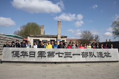 731部队是侵华日军在我国从事生物战、细菌战和人体试验相关研究的秘密部队。他们在抗日战争期间对华进行了惨无人道的试验,并在我国大面积制造鼠疫、霍乱等恶疾的大流行,超过30000名中国人、众多朝鲜和联军战俘在试验中被害。在遗址内,大家先后参观了731部队的本部大楼和地下细菌实验室。在遗址中有这样一个装置,日军将活人放进去,然后慢慢抽空空气的装置,来看人缺氧致死的过程;在展厅中这样一个“冻伤实验”镜头:一男一女穿着单衣站在雪地里,手被捆绑在树上,后面有一个穿着厚厚的棉衣、待着口罩和帽子的人正在通过装置向他们送“冷风”……一组组画面让人触目惊心,一个个镜头让人惨不忍睹。