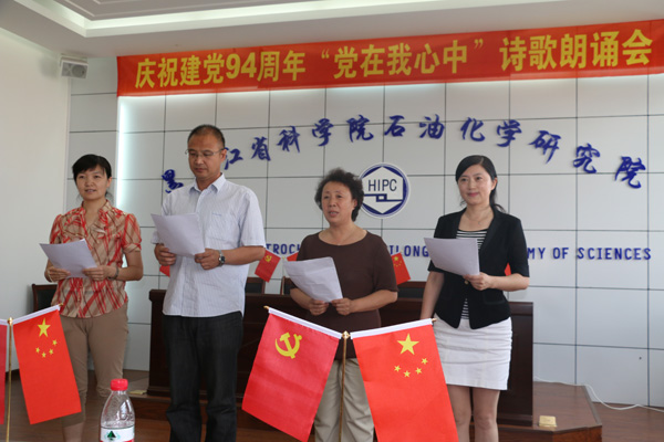 在庆祝中国共产党建党94周年之际, 7月1日,石化院党委举办了“党在我心中”主题诗歌朗诵会。院属各支部党员、入党积极分子及院领导班子成员参加了此次活动。