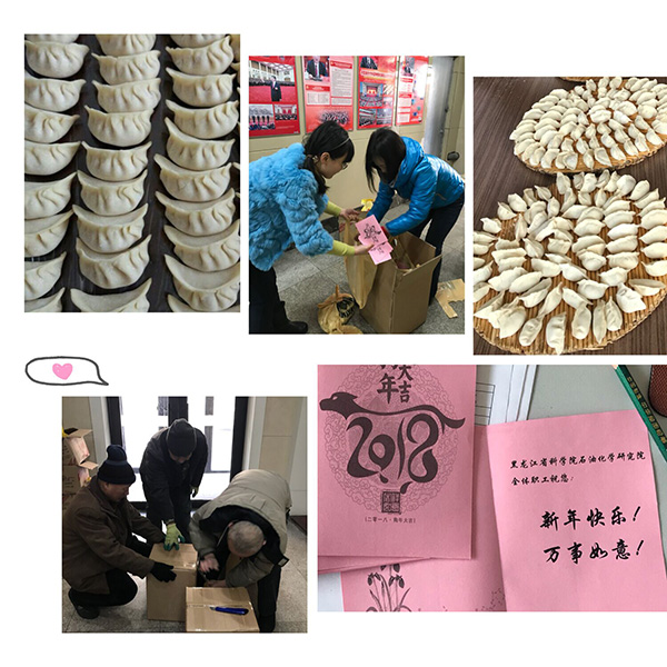 2018年1月30日上午,石化院组织二线职工开展“精准扶贫献爱心"活动,大家喜气洋洋地为科学院扶贫对接 点的群众包新春祝福饺子,并为他们送上自己写的新春祝福卡片,献上爱心,送上诚挚的祝福!目前,载着石化院全体职 工美好祝福的爱心饺子已经送往扶贫点。