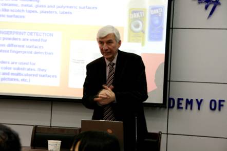 12月14日下午,在石化院九楼学术报告厅白俄国立大学副院长、白俄国家科学院院士伊瓦什科维奇先生做了精彩的学术报告。报告重点介绍了白俄国立大学在高分子化学、新材料、航空航天等领域的发展状况。报告受到与会人员的热烈欢迎,大家就耐高温复合材料、纳米技术、无机有机杂化耐高温胶粘剂等领域的具体科技问题与伊瓦什科维奇院士进行了深入交流。
