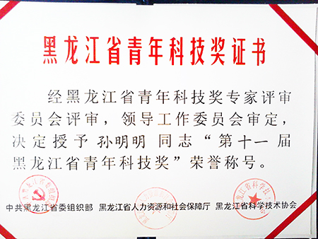 孙明明研究员获第十一届黑龙江省青年科技奖