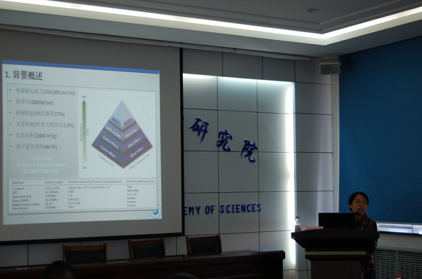 首先,哈尔滨工程大学范壮军教授向与会人员详细介绍了石墨烯的应用。他指出石墨烯应用备受关注的原因,以及石墨烯具有较强的开拓潜力,未来的应用范围是无法估量的,哈尔滨理工大学韩志东教授详细介绍了石墨烯材料的制备和应用。她指出石墨烯有太多优越性,在太阳能电池、纳米电子学、气体传感器、半导体等领域具有广泛的应用。石墨烯的替代空间巨大。从需求上看,石墨烯没有形成下游的应用和需求,目前最大的应用还是为各大科研院校的实验使用,大规模产业应用尚需很长的时间。