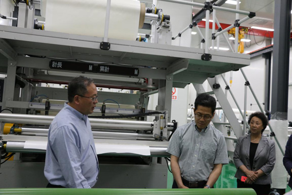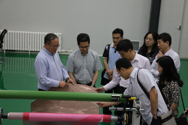 石化院院长白雪峰简要介绍了石化院的历史发展及石化院总体运行概况。随后,白雪峰院长带领大家一同参观从国外新引进的两条中、高温宽幅结构胶膜生产线的建设过程,并做详细讲解与介绍。并对未来的发展趋势,重点介绍了我院胶黏剂的总体情况及应用情况。