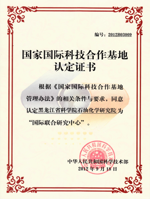 认定时间:2012年12月被科技部认定为国家级国际联合研究中心